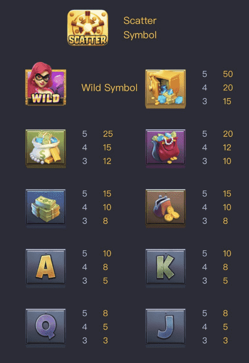 สัญลัญลักษณ์พิเศษภายใน เกมสล็อตจอมโจรสาว pg